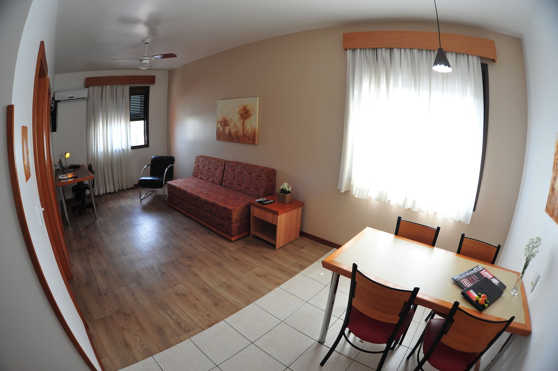 Nossos apartamentos são amplos, bem iluminados e arejados, com capacidade para até 3 pessoas. Totalmente mobiliados e equipados, oferecem tudo o que você precisa para uma estadia confortável.
